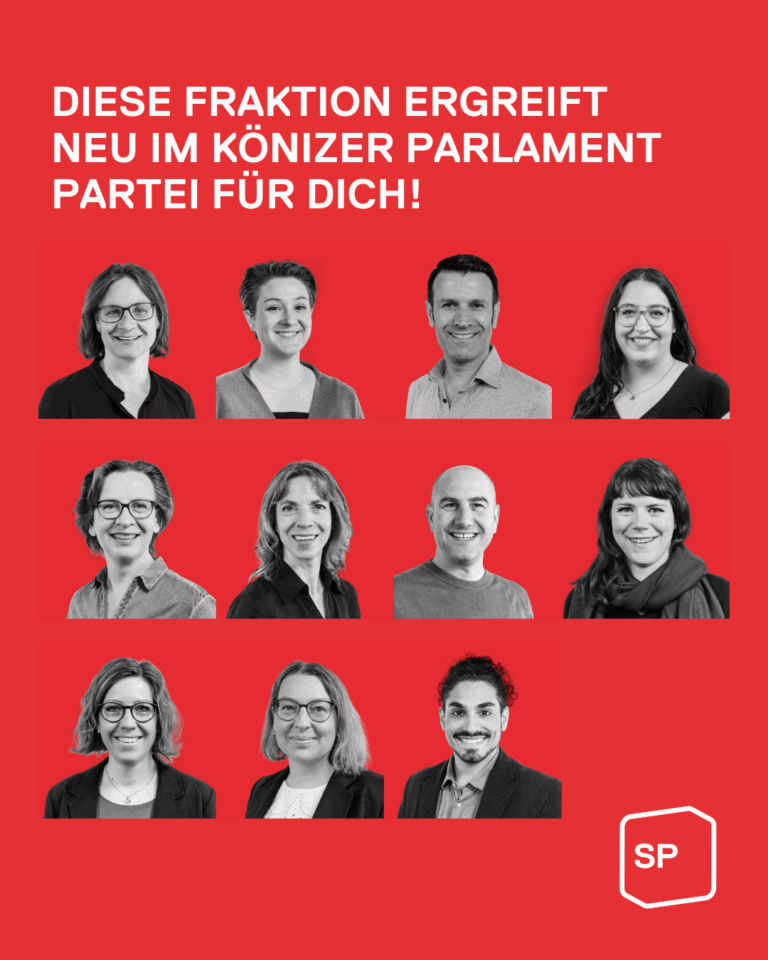 Die SP gewinnt 1 Sitz im Könizer Parlament dazu. Sie ist damit klar diewählerstärkste Partei in der Legislative. Die SP bedankt sich bei der Bevölkerungfür das Vertrauen und gratuliert allen